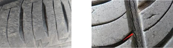 轮胎橡胶受清洗剂、上光剂、融雪剂等化学剂影响,经常使用会导致裂纹。由化学剂影响而产生的裂纹,需要观察受影响的部位、裂纹大小等问题,个别判断。